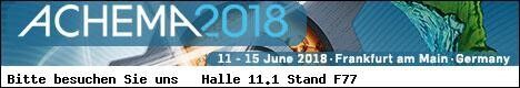 Vom 11. - 15. Juni 2018 findet in Frankfurt am Main die Achema 2018, die internationale Leitmesse für die Prozessindustrie statt.