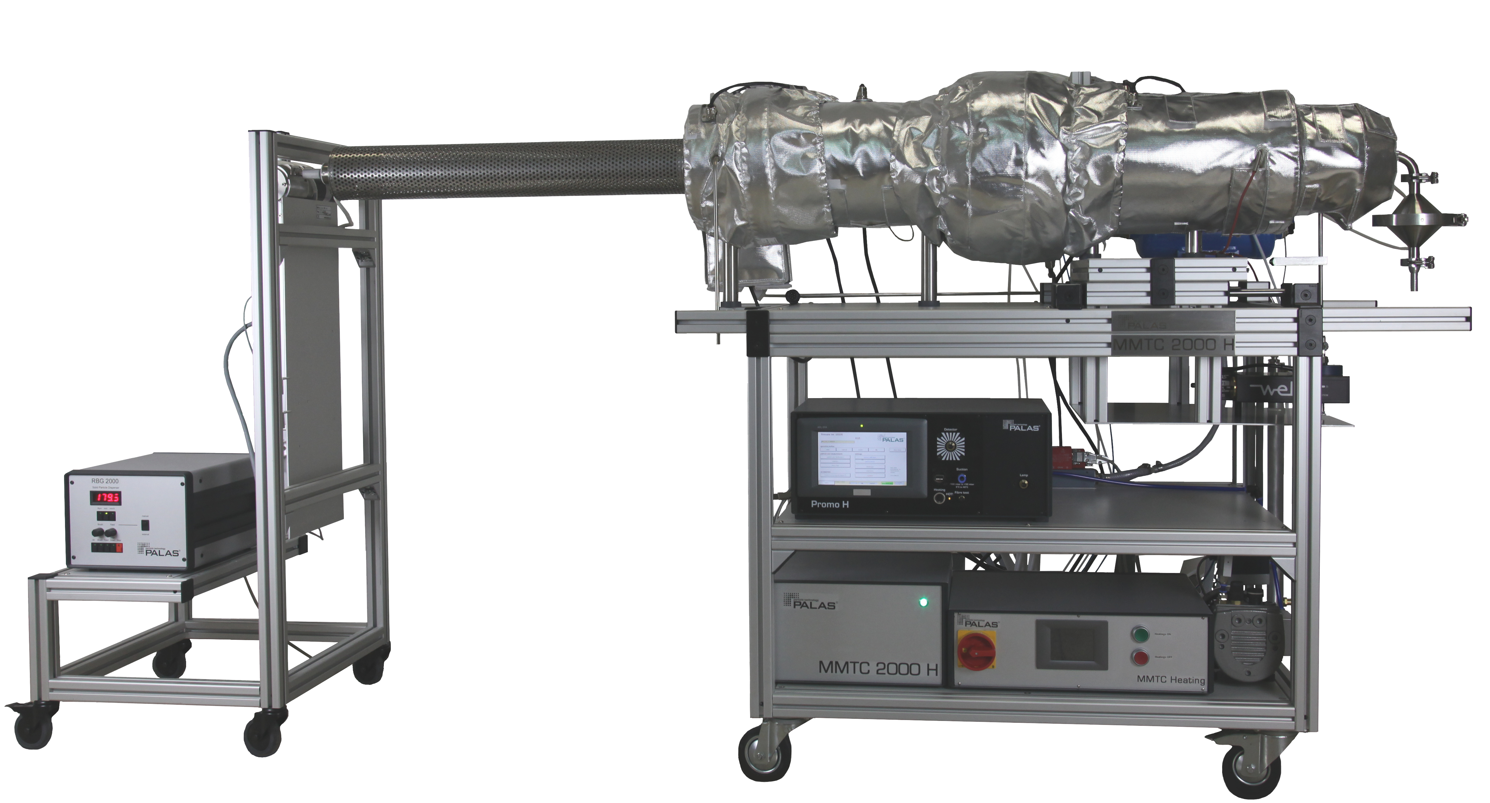 In this version, the filter holder MMTC 2000 E is made of V2A in order to cover a higher temperature range. The addition of heating and insulation allows filter testing at temperatures of up to 250 °C.