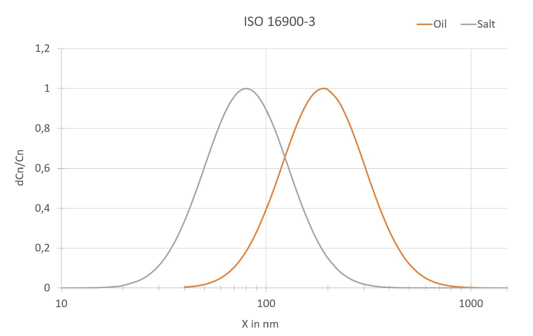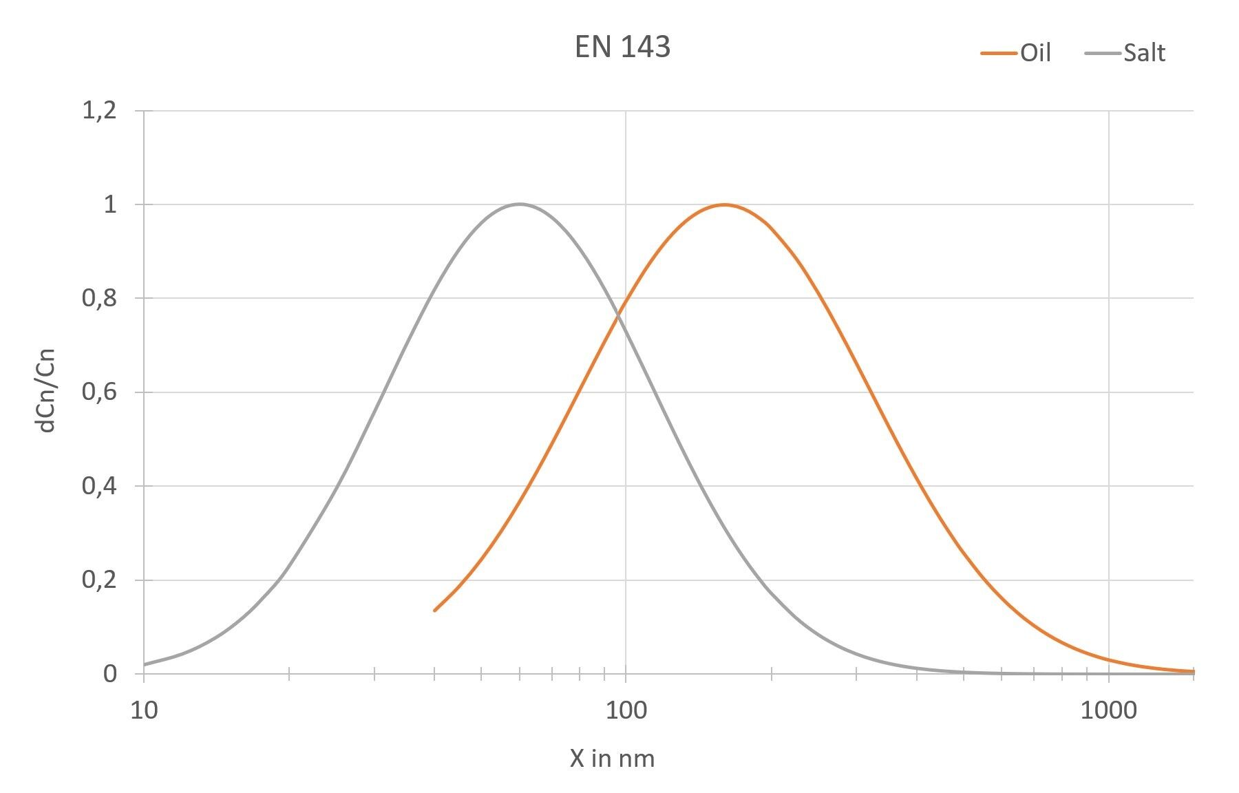 Oil: Median diameter 190 nm | Geom. standard deviation 1,4 - 1,8