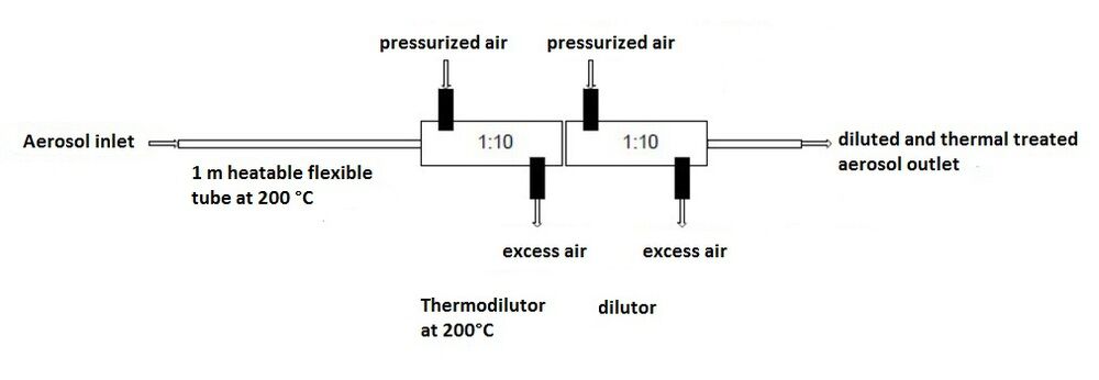 In the PMPD 100, volatile particles are vaporized using a thermodilution up to 200 °C. The dilution factor is 1:100 (see Figure 1). A dilution factor 1:100 (see Figure 1) is achieved by cascading 2 x dilution factor 10.