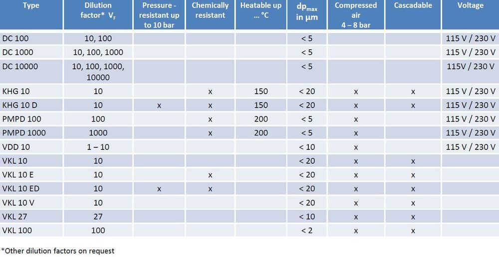 • The dilution steps are combinable with all common particle counters