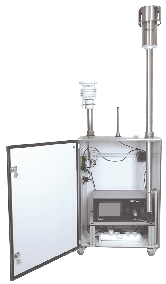 A multi-instrument strategy was applied to cover the full spectrum of particles from ultrafine to very large sizes. Central to this setup was the Fidas® 200S from Palas, an EN 16450-certified fine dust monitoring device providing high-resolution real-time data for PM1, PM2.5, and PM10. It was complemented by the welas® 2500, optimized for coarse particles above ten micrometers, and the Cloud Droplet Analyzer (CDA), which made large spherical particles and droplets measurable.